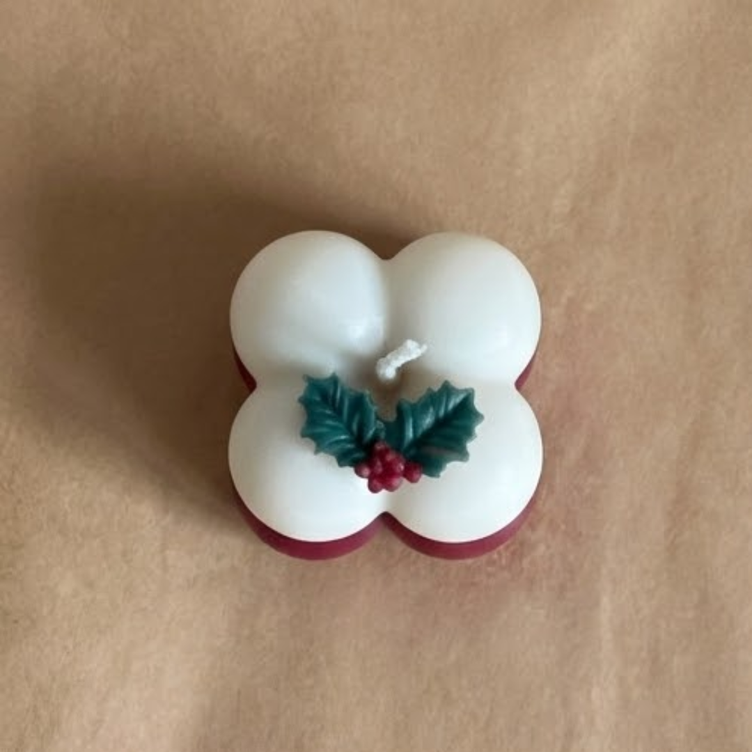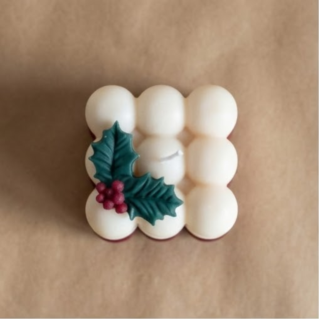 Our Big / Small Size Bubble Candle is where modern design meets holiday magic. Hand poured with care in small batches, this sculptural candle features rich maroon and soft ivory tones a visual celebration of warmth and winter elegance. Adorned with a handcrafted holly leaf and berry detail, it captures the essence of Christmas in a single flicker.