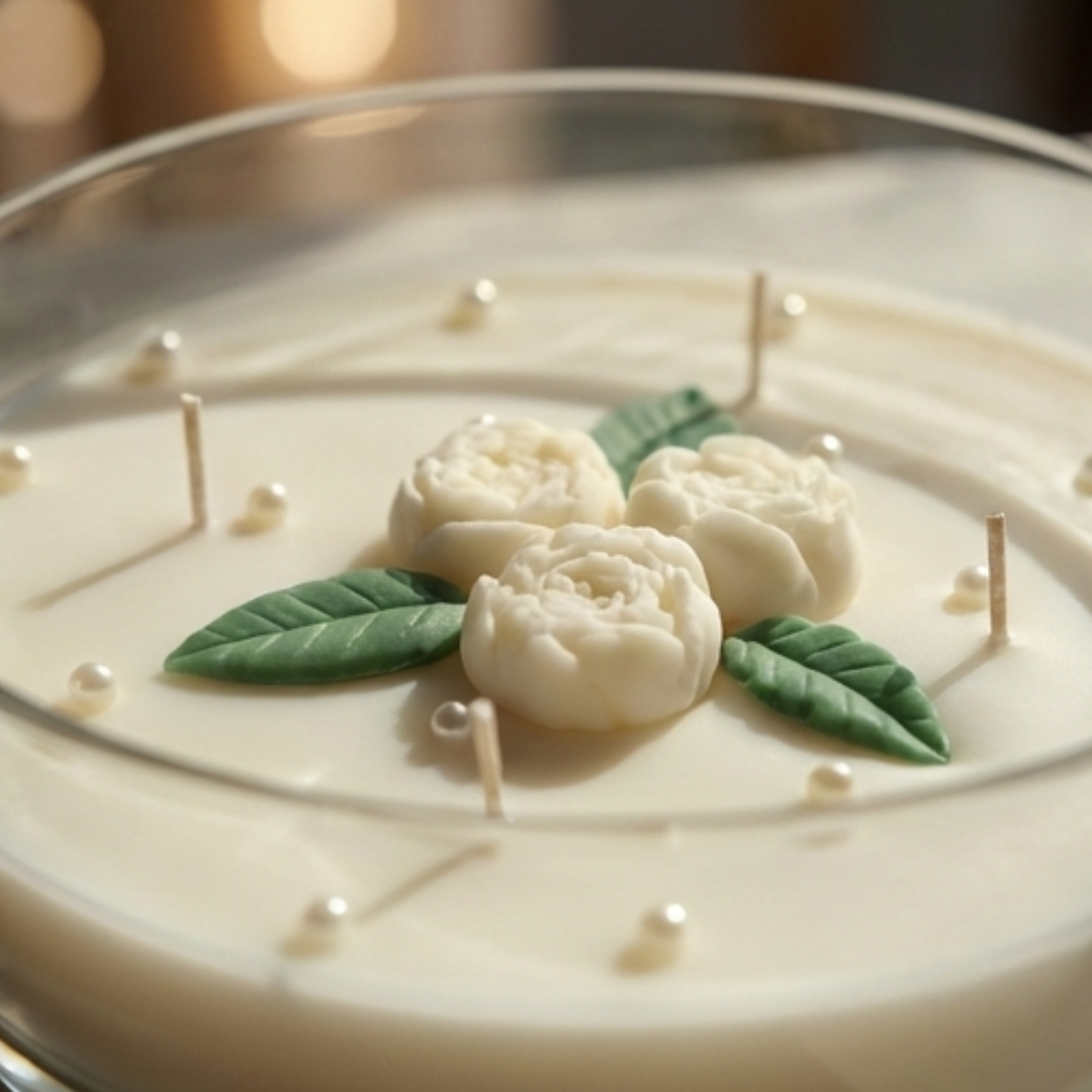 Minimalism meets luxury in our Glass Elegance Candle. Hand-poured in a clear glass vessel, this candle embodies purity and sophistication. Its pristine white wax is adorned with delicate floral carvings and pearl accents, making it a serene yet striking centerpiece. Multiple wicks ensure a balanced, radiant glow, filling your space with both light and calmness.