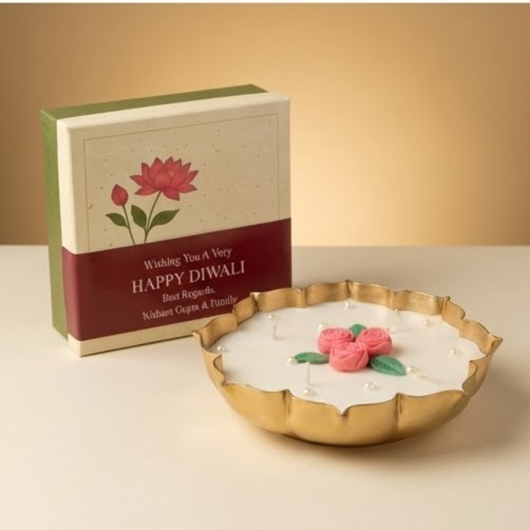 Designed for festive pooja décor, Diwali gifting, wedding favours, or elegant centrepieces, this piece carries presence even before it’s lit. Once unwrapped, it speaks of care, culture, and considered luxury — the kind that feels meaningful, not ornamental.