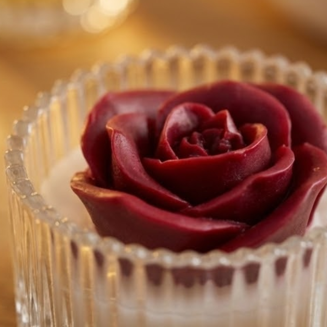Our Rose in Crystal Jar Candle is hand-poured with 100% natural soy wax, crowned with a finely detailed rose that looks almost real. Each petal is lovingly crafted and tinted in a deep wine hue, creating a visual poetry that celebrates elegance and love.