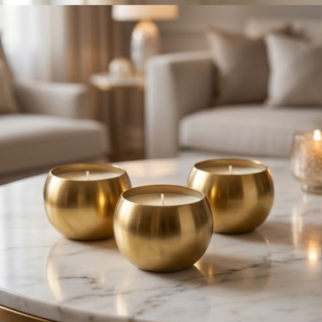 The Round Metal Candle Set brings understated elegance into your space. Hand-poured and set in beautifully crafted gold-finish metal bowls, these candles are designed to add warmth, glow, and quiet luxury to festive settings and intimate gatherings. Their clean, round silhouette feels contemporary yet timeless.