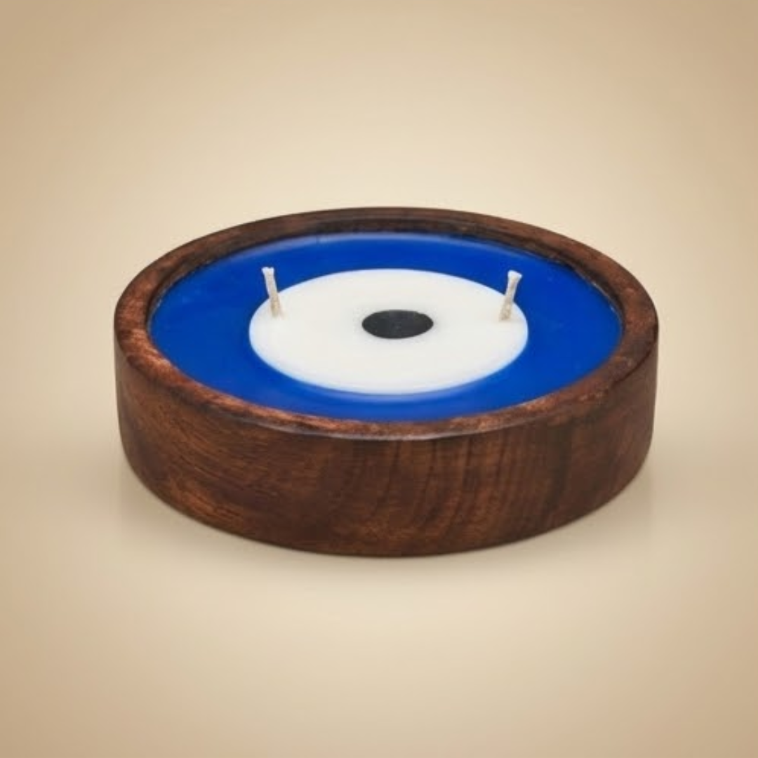 🕯️ Type: Dual Wick Wooden Evil Eye Candle